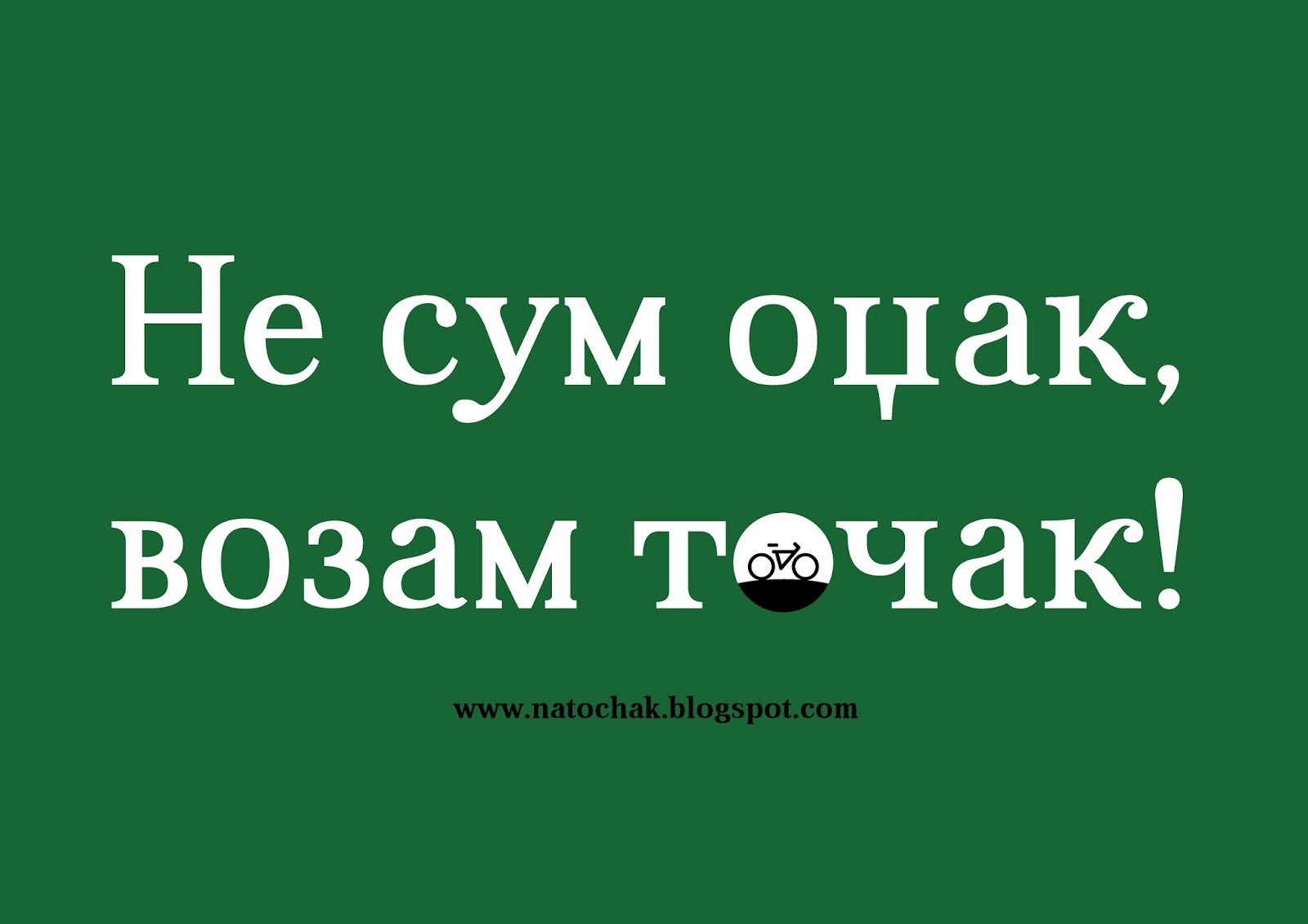 Кога бев мала во далечните 80-ти на 20-тиот век моите имаа еден чуден ред на одење кај дедо ми и баба ми со точаци. Кога потпораснав и почнав да одам на училиште со точак бевме неколкумина што го користеа точакот како превозно средство. На факс и после факс уште помалку луѓе го користеа како превозно средство и не сакав да се делам од остатокот. Кога за малку ќе ме удреше автобус на Рекорд, а јас на точак прв пат многу се уплашив и не возев навистина долго време. После х време заклучив дека редно е да одам на работа со точак, прво со тој за беснеење, а во поново време и со убавицата за низ град. Гледам дека моите биле во право- за низ град користи точак!